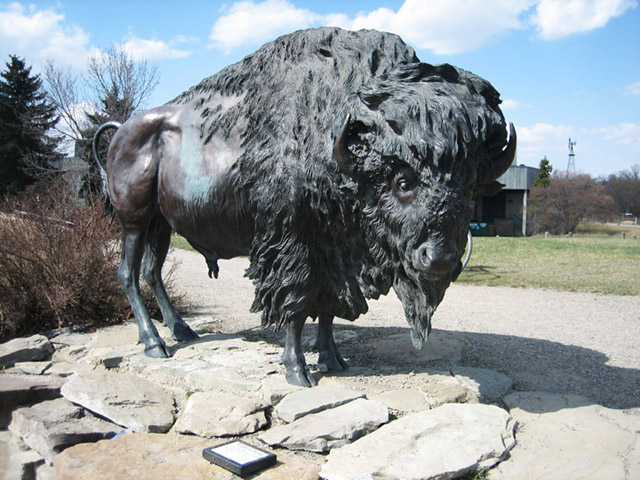 Bronze sculpture of Plains Bison made by Don Toney and located at Fort Calgary: