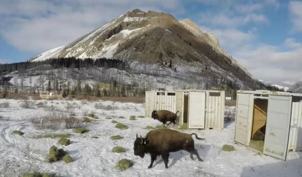 Bison were introduced into Banff National Park in 2017 to re-establish a herd here after a century of their absence (Parks Canada):
