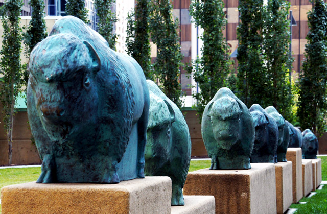 We've been inspired by the story of the bison, as have others. The Buffalo Trail bronze sculpture made by JoAnne Schachtel was installed by the Calgary courthouse, as photographed by Bernard Spragg: