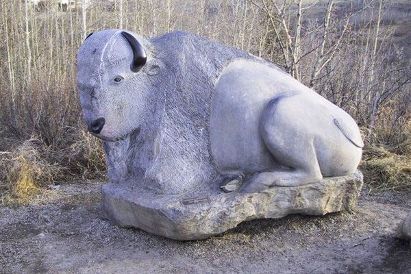 Sunning Buffalo statue by Eric Peterson and located in Twelve Mile Coulee Natural Environment Park, Calgary: